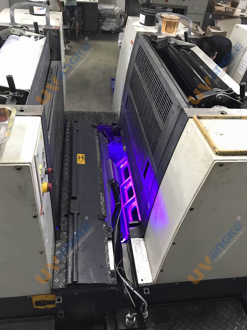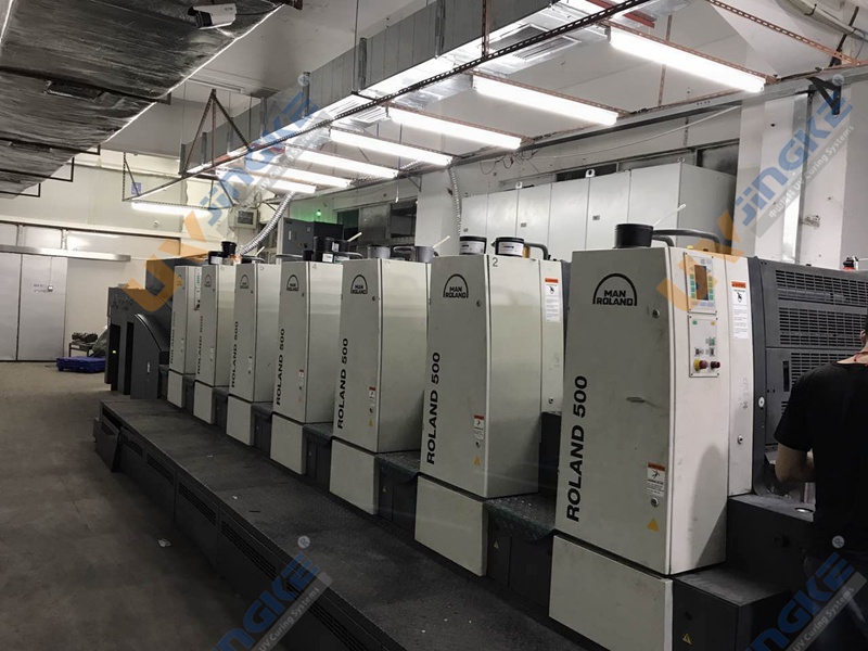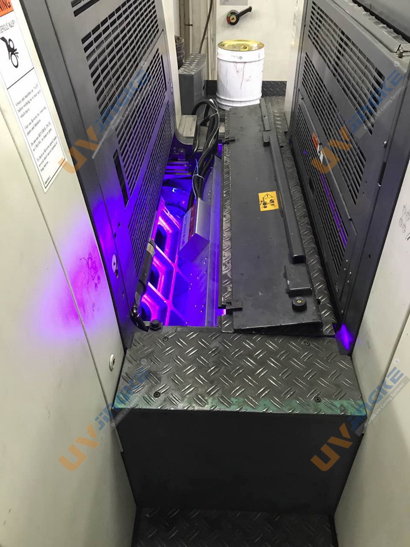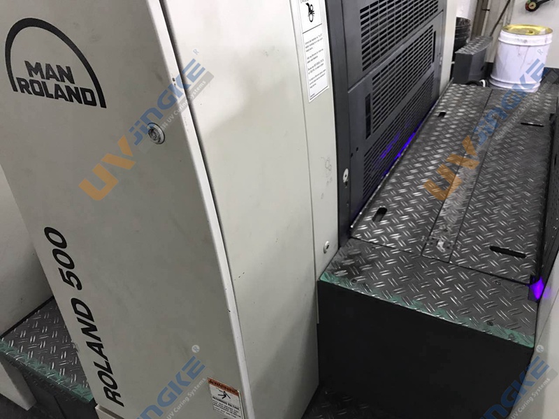 中山市精科印刷设备有限公司可以针对不同品牌、类型、型号、年份的印刷机设计安装一整套专用UV固化系统;中山精科的LED UV系统经过多年的研发测试,产品已经非常稳定高效成熟,实装的多台胶印机固化效果一流。下面就是我们为客户的曼罗兰500印刷机加装LED UV系统。LED UV设备运行效果良好,油墨固化迅速,设备操作简单,各方面都受到客户的肯定。